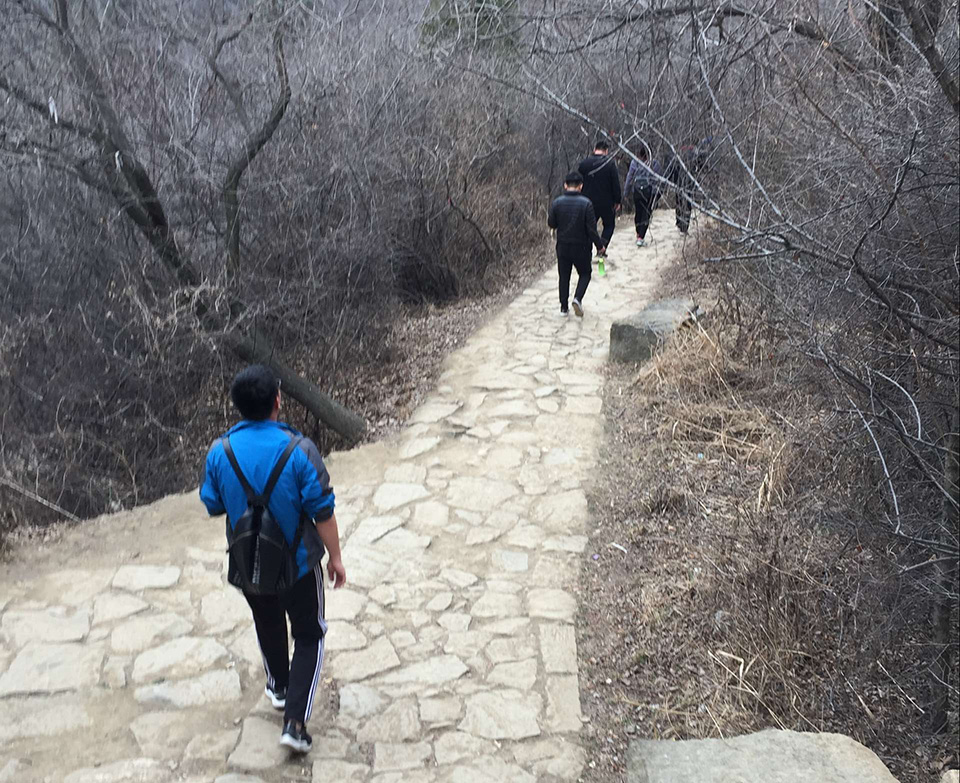 下午一點,員工們沐浴著春風(fēng),沿著山間小道,邁著輕盈的步伐,正式開始向這次的目的地――羊頭山進發(fā)。